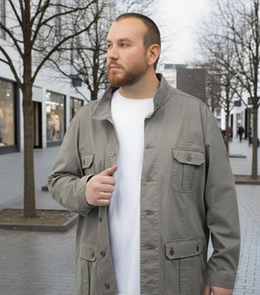 Для весны и осени рекомендуем дафлкот, утепленные жилеты и куртки - ветровки, разной длины и фасонов, дизайнерские рубашки, джинсовые куртки, толстовки и многое другое для мужчин с нестандартной фигурой.